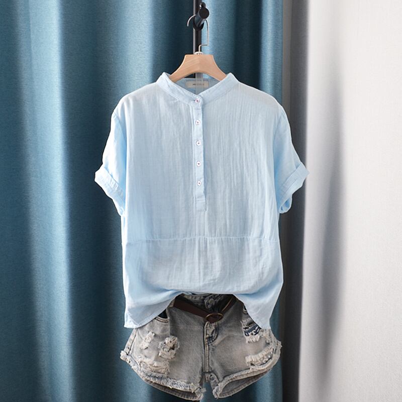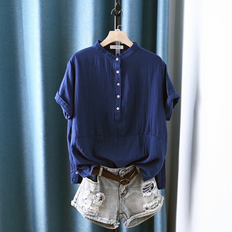 初回送料無料コットンリネンゆったりサイズトップス半袖シャツサマートップス人気商品