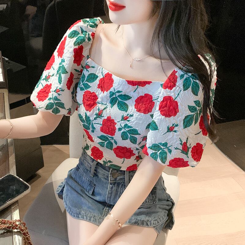 初回送料無料夏のトップスパフスリーブ花柄シャツレディースファッション半袖