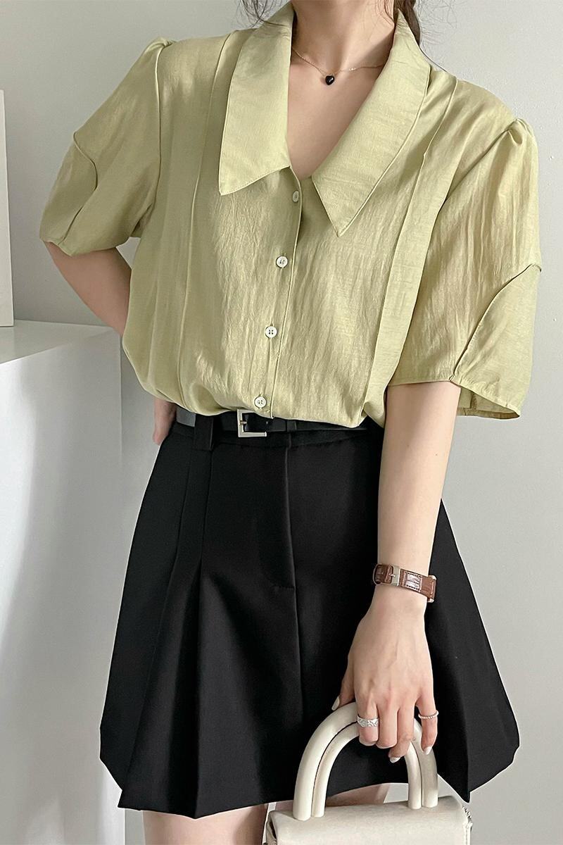 初回送料無料トップスブラウスパフスリーブシャツ半袖Vネックレディースファッション