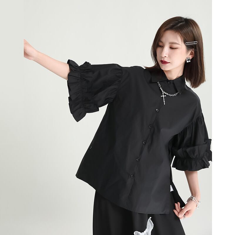 初回送料無料ラペルシャツサマーシングルブレスト半袖レディース靴ファショントップス人気商品
