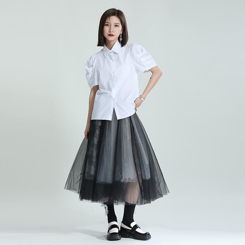 初回送料無料ゆったりサイズパフスリーブシャツサマートップ半袖レディース靴ファショントップス人気商品