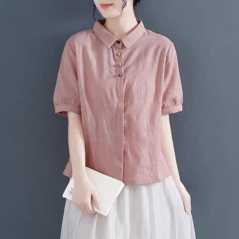 初回送料無料トップシャツコットンリネン半袖ラペルシャツトップス人気商品