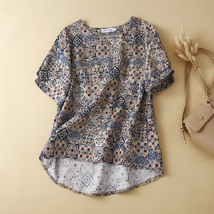 初回送料無料コットンリネン半袖TシャツTシャツレディースファショントップスブラウス人気