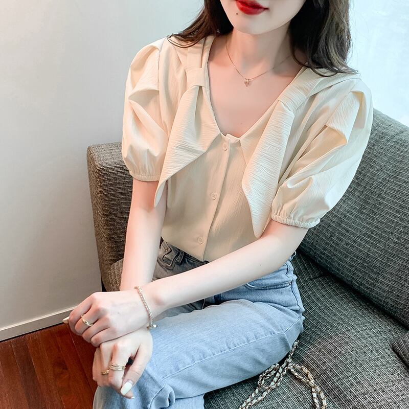初回送料無料半袖シャツVネックパフスリーブレディースファショントップス人気商品
