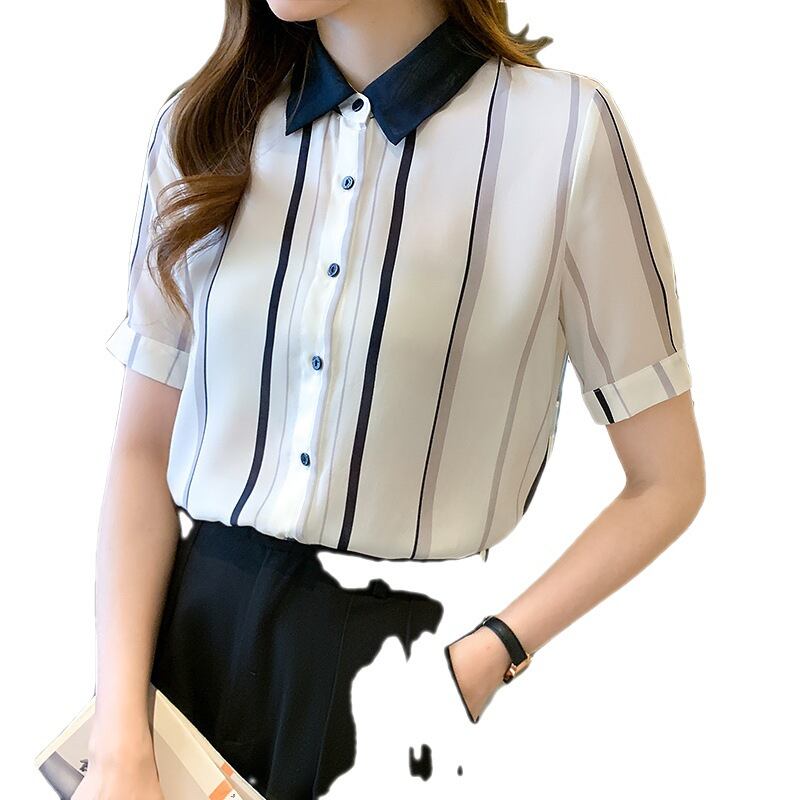 初回送料無料半袖シャツストライプトップシフォンレディースファショントップス人気商品