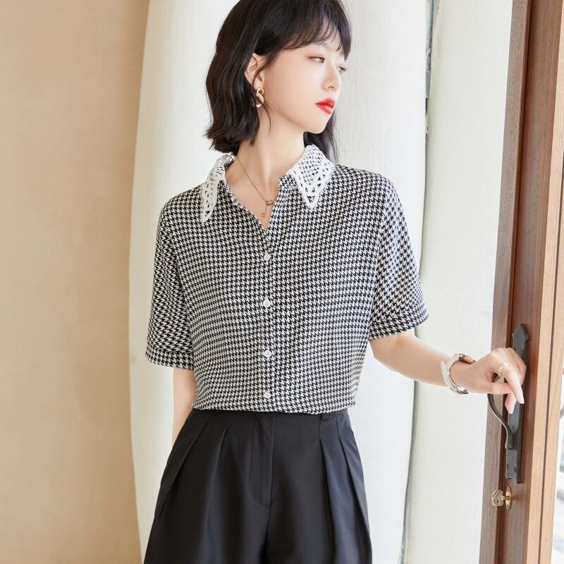 初回送料無料半袖シフォンパッチワークレースレディースファショントップス人気商品