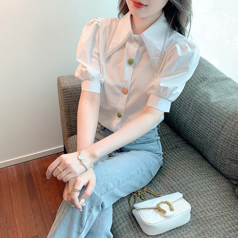 初回送料無料半袖シャツシフォンカーディガンパフスリーブレディースファショントップス人気