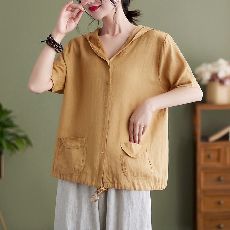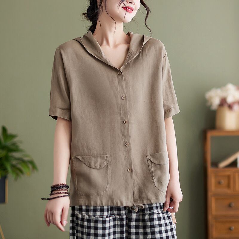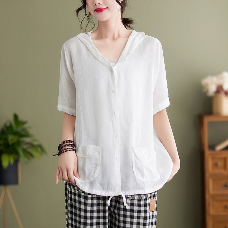 初回送料無料夏新作ブラウス フードシャツ半袖 シンプルオシャレトップス