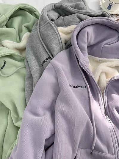 パーカーレディーススウェット秋冬ゆったり裏起毛厚手保温フード付きコートベルベット韓国ファッションゆるいジッパー付きカーディガン