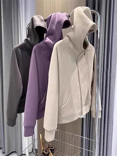 裏起毛厚手パーカーレディース秋冬ゆったり着やせアウタートップス百掛けカジュアル運動上着ジッパーコカーディガンート厚手秋冬小柄