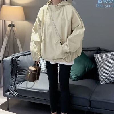 カジュアル ななめファスナー コーディネート フード付きジャケット ファッション 韓国版 ゆったり デザイン感 春秋 突撃衣 レディース