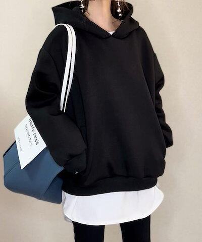 2024秋の新作楽天レディースシンプル釘ビーズトップスゆったりハットパーカーレディース