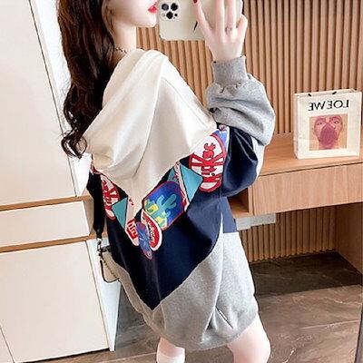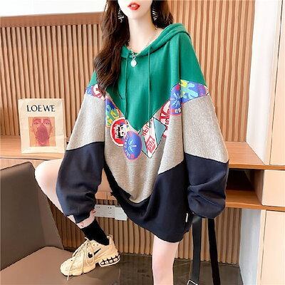 レディース スウェット 韓国 ロングタイプゆったり フード付き インナー トップス