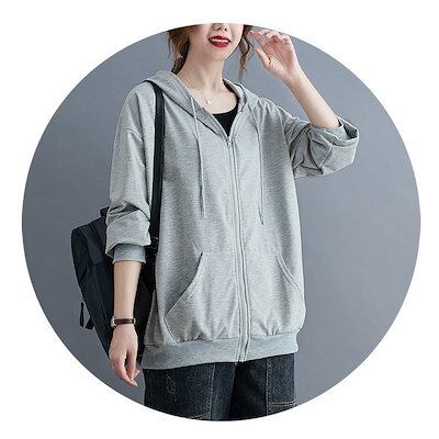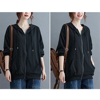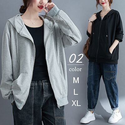 パーカー アウター レディース ジップアップ パーカー 秋 新作 ゆったり スウェット ジップパーカー フード付き アウター カジュアル 体型カバー シンプル