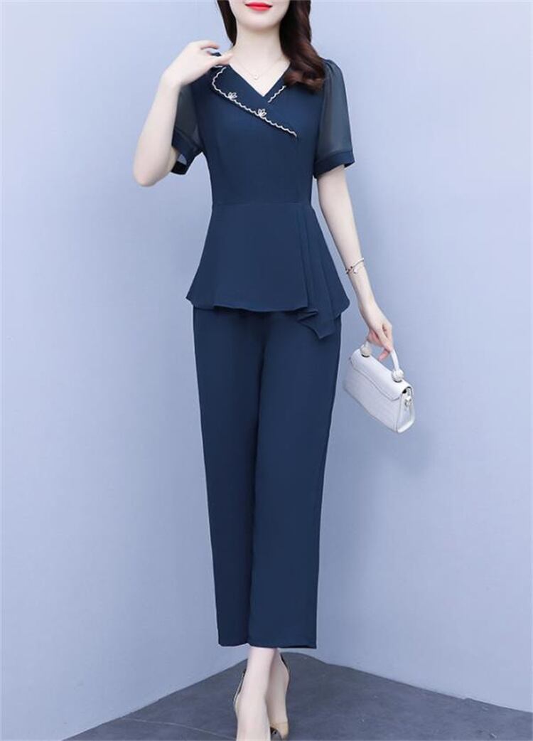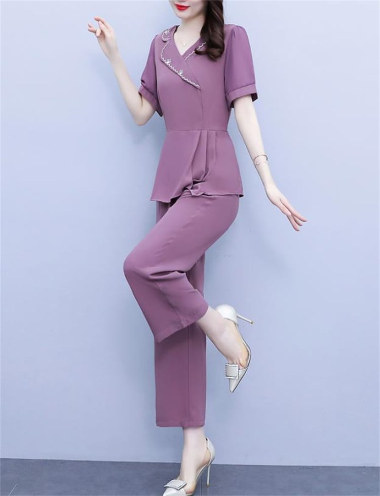 当店在庫あり 2点セット 快適である ロングパンツ 大きいサイズ トップス 半袖 ピュアカラー