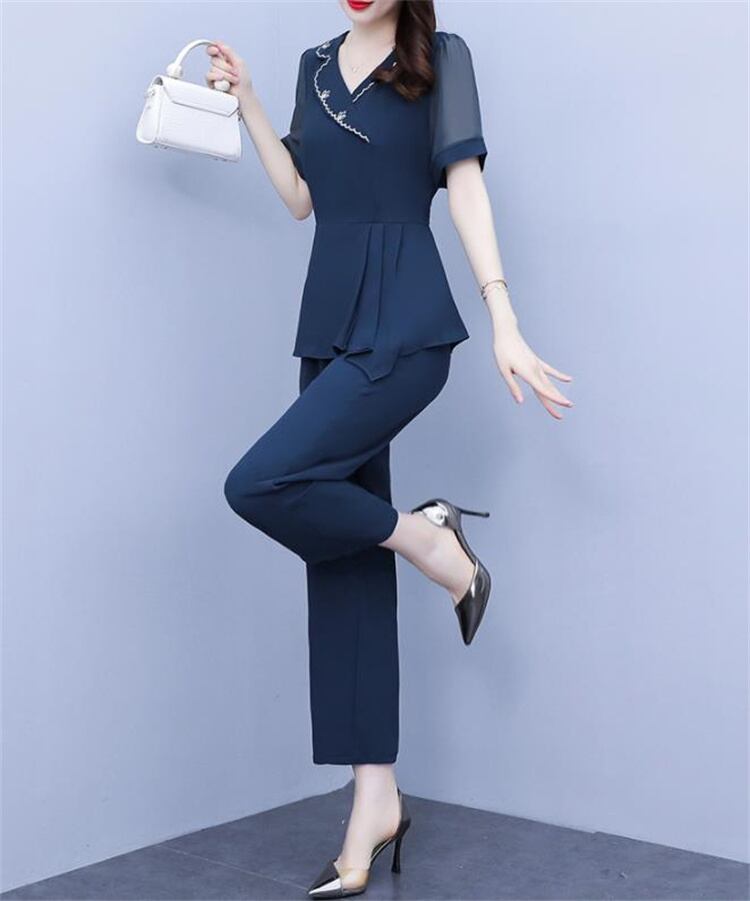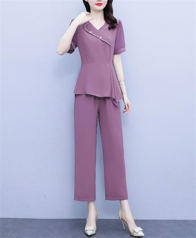 2点セット 快適である ロングパンツ 大きいサイズ トップス 半袖 ピュアカラー