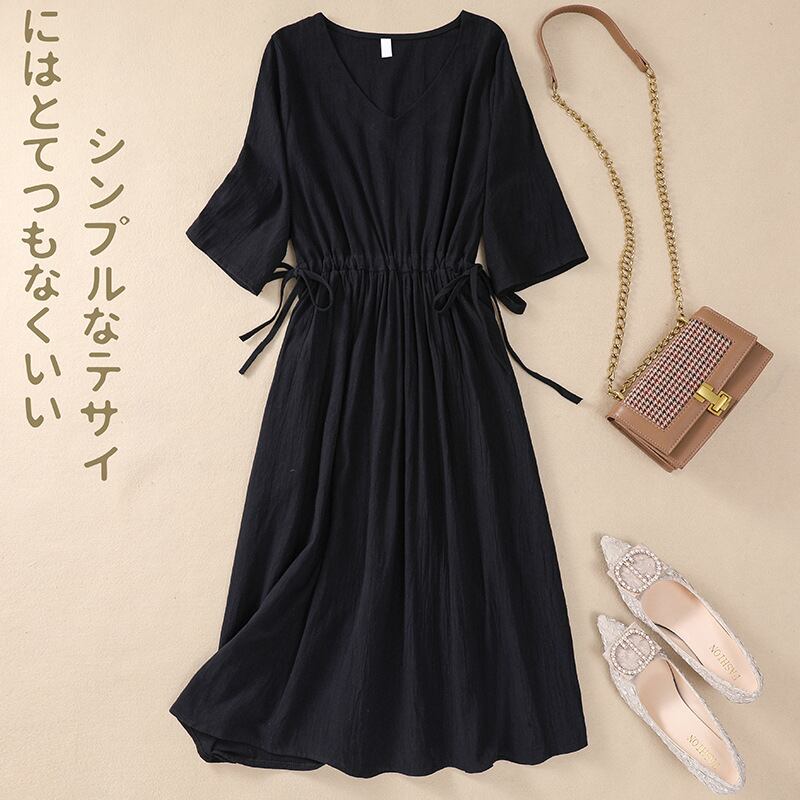 初回送料無料夏新作ワンピース トップス綿リネンドレス半袖ファッションワンピース