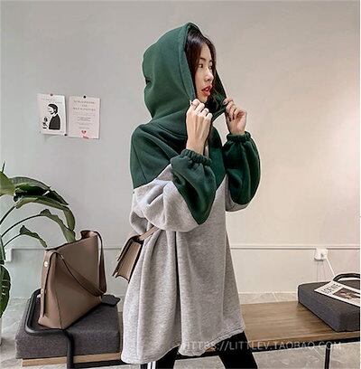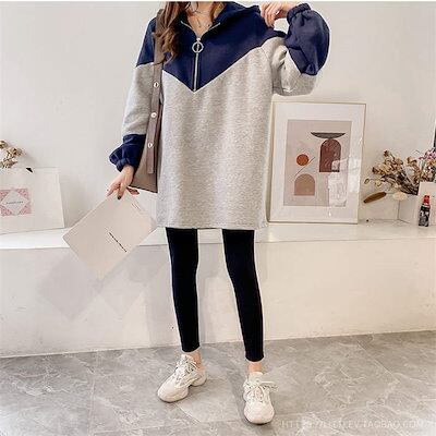 パーカー レディース ワンピース ワンピ トップス アウター トレーナー ジャージ スウェット フード ロングパーカー プルオーバー 裏起毛 厚手 ハーフジップ 配色 チュニック スポーツウェア カジ