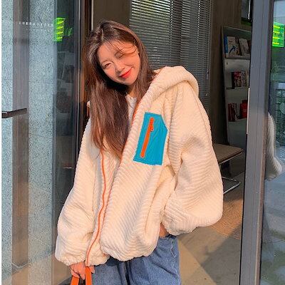 アウター ゆったりスウェット 厚手 アウター フード付き秋ジャケット 韓国ファッション 防寒 カーディガン 裹起毛コートレディース レディース 保温 アウター 秋アウター トップス