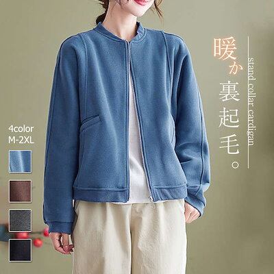 カーディガン レディース 裏起毛 厚手 秋冬 コート アウター 羽織 前開き ゆったり 体型カバー トレーナー ノーカラー 長袖 きれいめ おしゃれ かわいい 大人 お出かけ 暖かい 防寒 大きいサイ