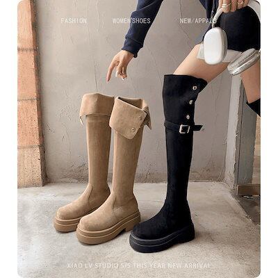 25発売 新作 レディース ブーツ ニーハイブーツ 防寒 裏起毛パンツ 厚手 ラムズフリース 騎士ブーツ 美脚 靴 厚底ブーツ シューズ 加絨保暖靴 ロングブーツ 福袋90