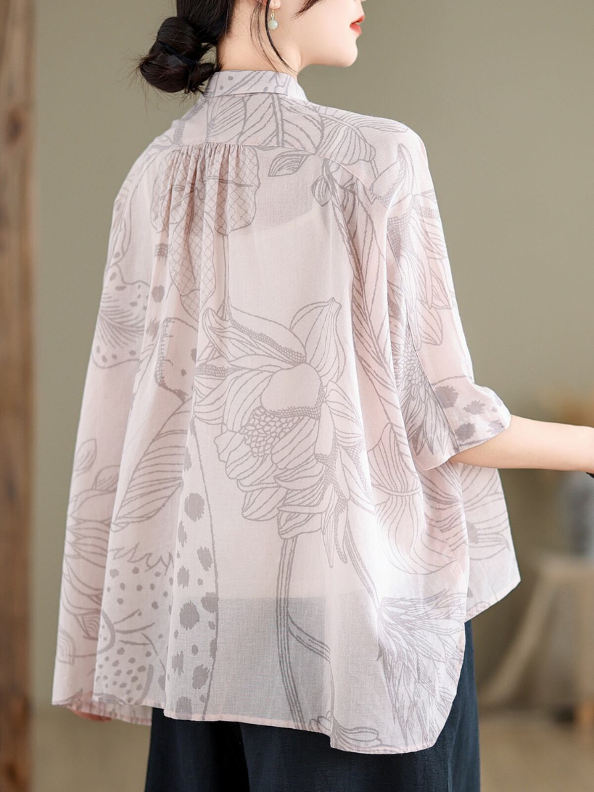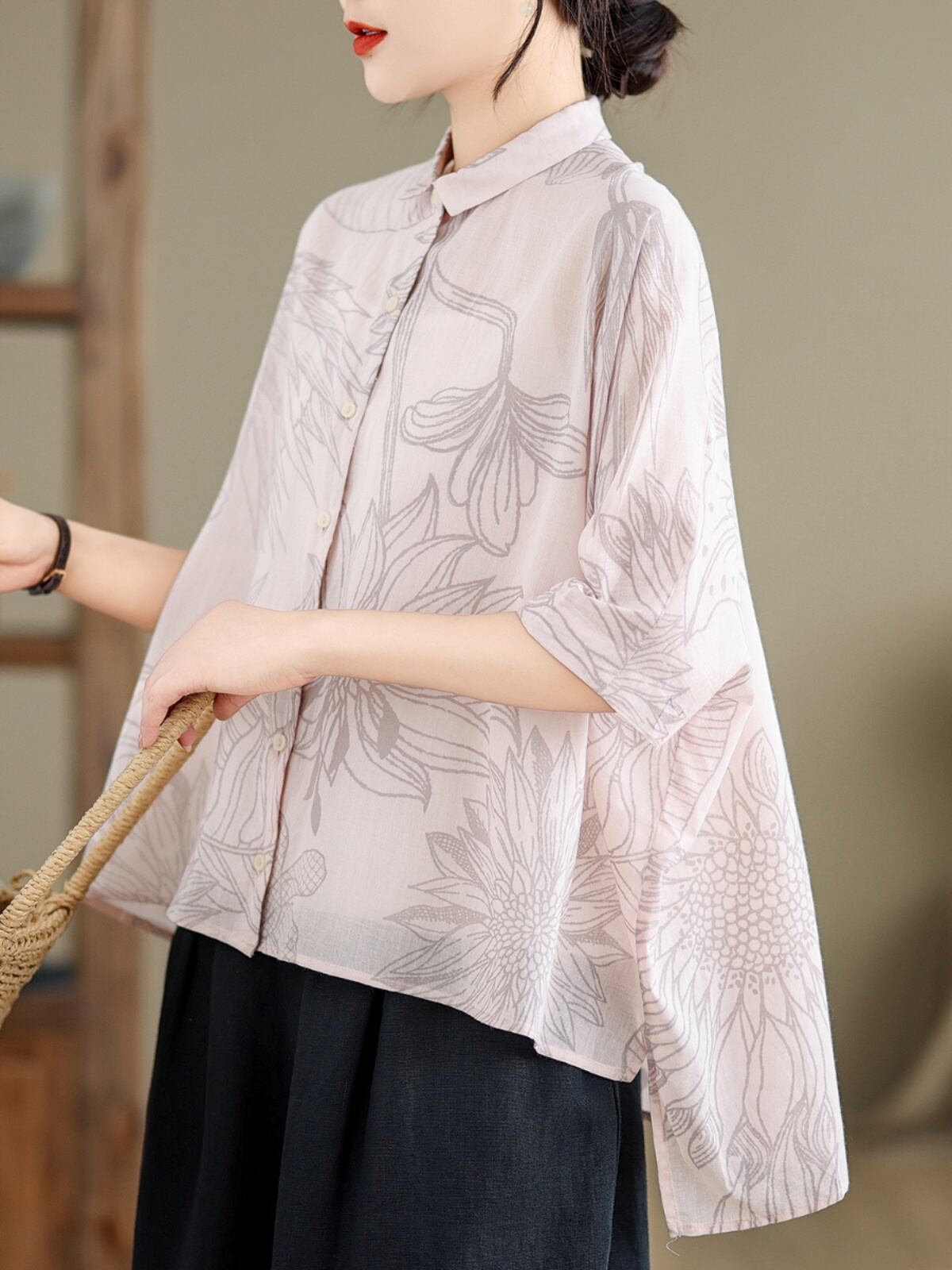 初回送料無料 新作レディースファッション カジュアル ゆったり 半袖プリント シャツ トップス