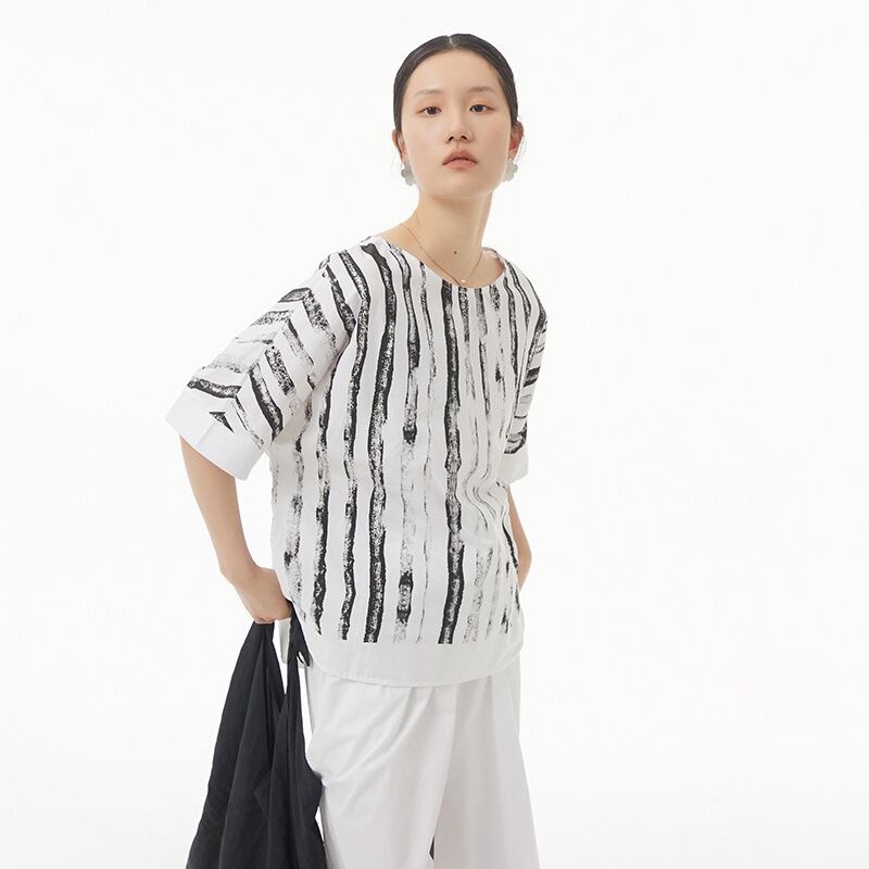 初回送料無料新作韓国人気トップスTシャツ半袖フィットルーズトップストライプ半袖