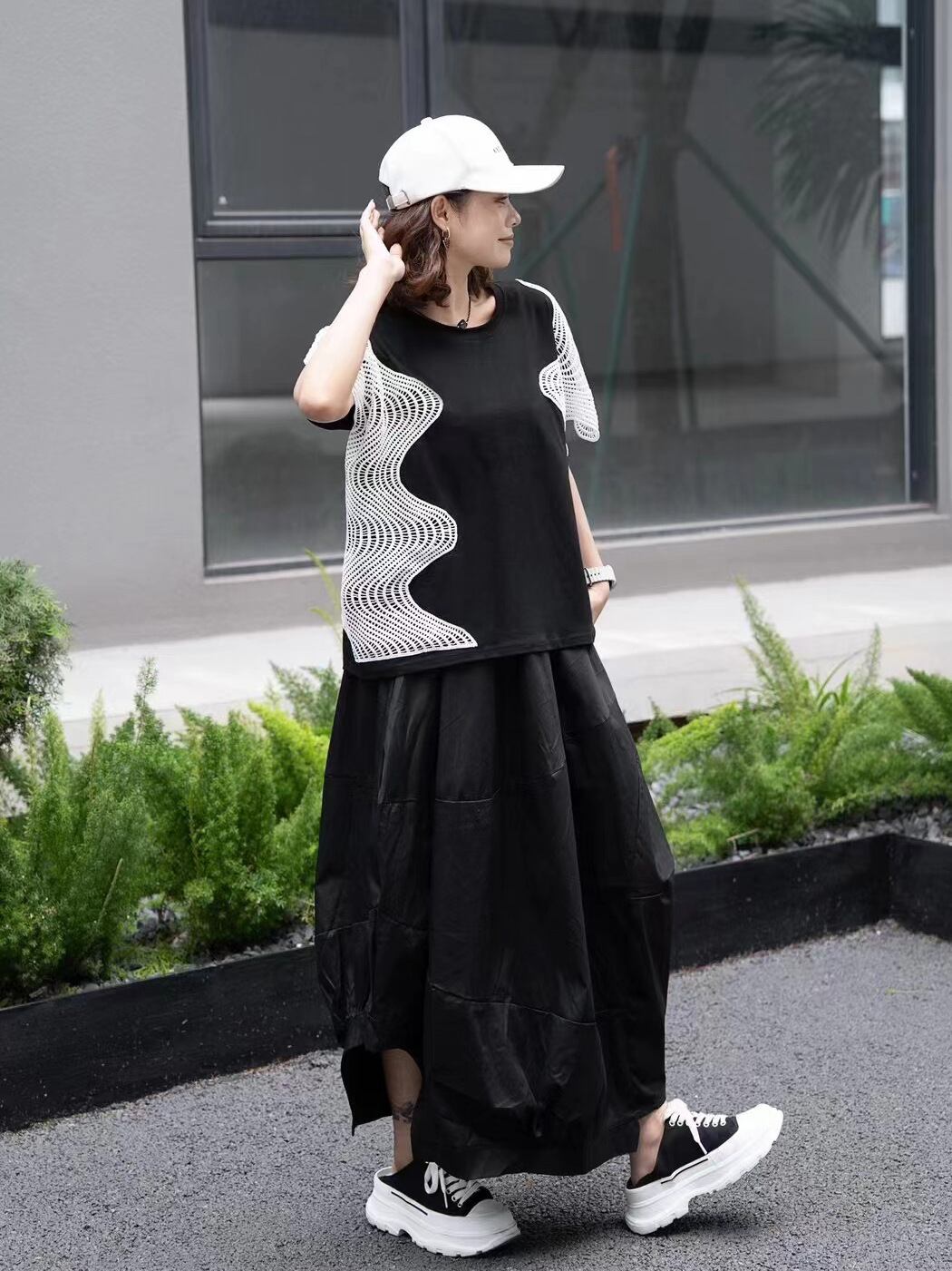 初回送料無料 夏レディースファッション カジュアル ゆったり パッチワーク 半袖 人気トップス