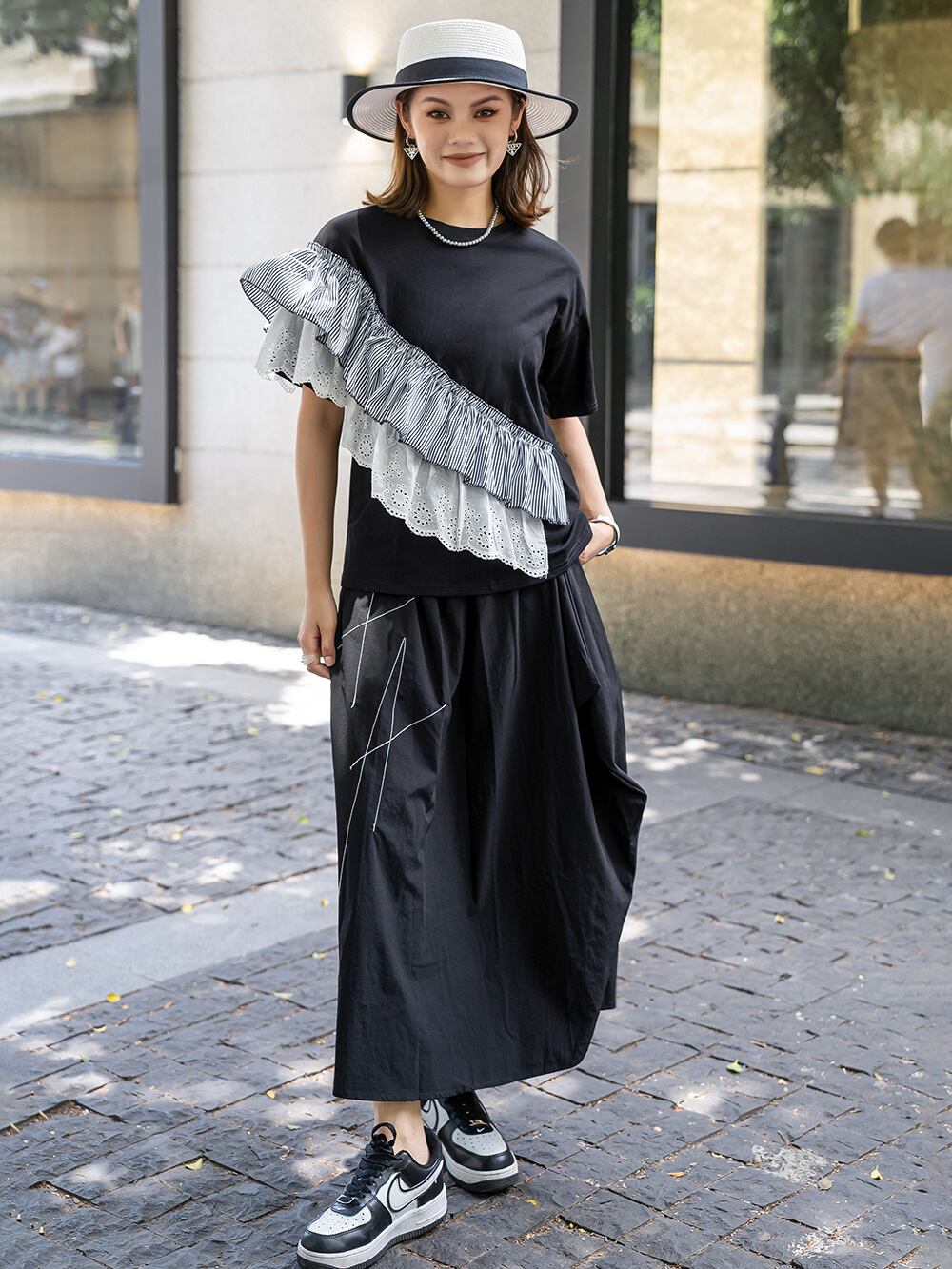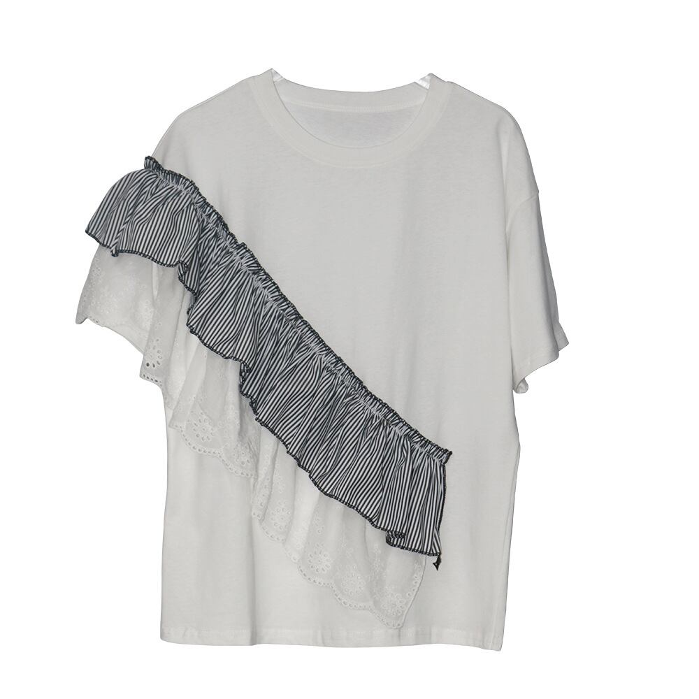 初回送料無料 夏レディースファッション カジュアル レースパッチワーク ゆったり 半袖トップス