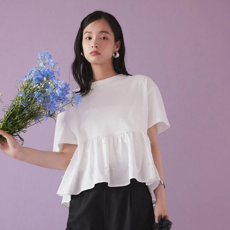 初回送料無料 新品ゆるいTシャツ 半袖パールトップス レーディスファション商品 トップス