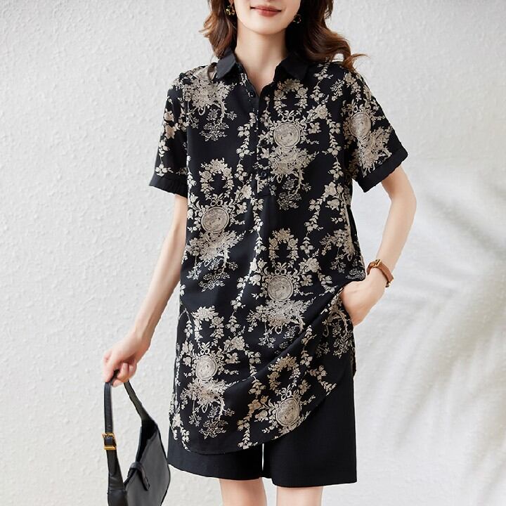 初回送料無料 夏の半袖花柄トップス カジュアルシャツ 中長上着 人気トップス