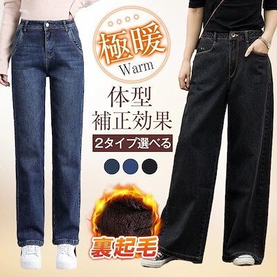 ワイドデニム デニム レディース パンツ 裏起毛 低身長 ワイドパンツ デニム ワイド デニムパンツ 脚長 ロング ロングパンツ ワイドパンツ ボトムス ハイウエスト ワイド ジーンズ ストレート30