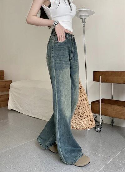 24パンツ デニム ジーンズ ワイド ストレート ハイウエスト 脚長効果 美脚効果 細見え ウォッシュ カジュアル おしゃれ かわいい 韓国ファッション レディース お出かけ