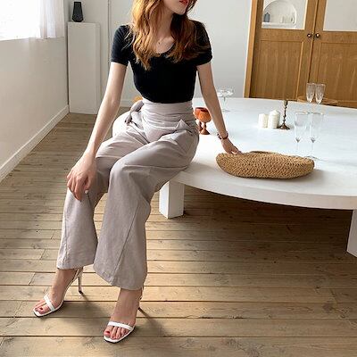 ワイドパンツ レディース ウエストゴム きれいめ シーズンレス ワイドパンツ レディース カジュアルパンツ スラックスパンツ ズボン 韓国 大きいサイズ