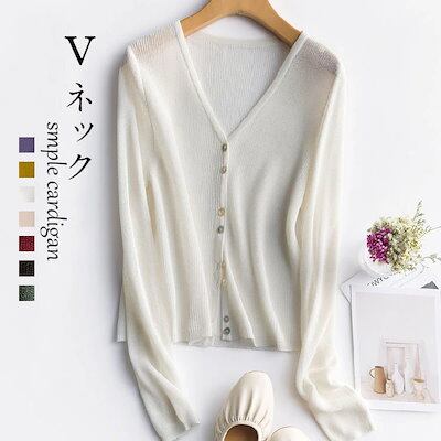カーディガンレディース薄夏用長袖トップス夏羽織羽織り羽織ものVネックボタン留めショート丈サマーボレロサマーカーディガン亜麻麻通気涼しい春夏白黒カラバリー冷房対策UV対策