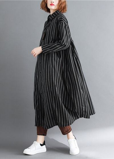 ストライプシャツ レディース 長袖 ロングシャツ 夏 開襟 折り襟 ボタン留め 長袖シャツ 薄手 カーディガン ゆったり カジュアルシャツ ロング ドロップショルダー 羽織り アウター ライトアウター