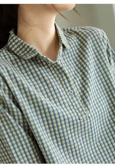 シャツ ブラウス レディース 長袖 シャツブラウス 大きいサイズ 長袖ブラウス 涼しい 夏 チェック柄 トップス きれいめ プルオーバー 折り襟 ボタン留め 袖折り返し プルオーバーシャツ カジュアル