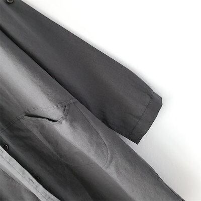ロングシャツ レディース 春夏 秋物 長袖チュニック バンドカラー シャツ チュニック スタンドカラー 立ち襟 ロング 開襟 長袖 綿麻風 無地 シャツ 羽織 羽織りもの ボタン チュニックシャツ ト