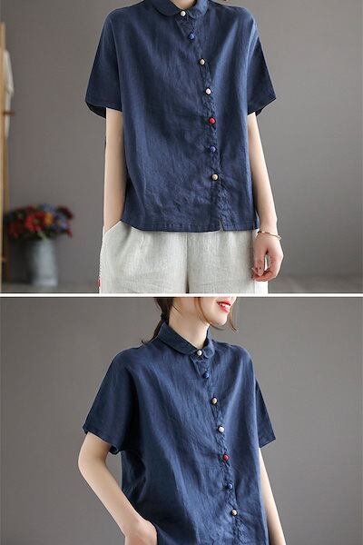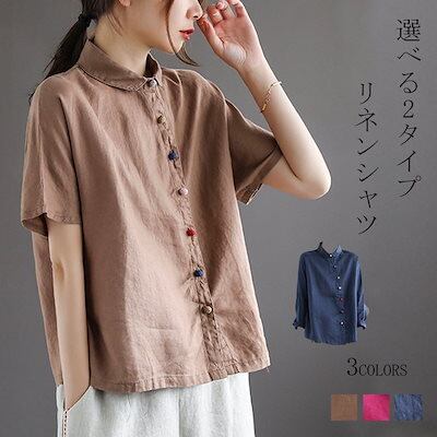 リネン シャツ レディース 半袖 長袖 長袖シャツ 秋 半袖シャツ 春 夏 リネンシャツ 100%麻 斜めボタン 柔らか 通気性 デザイン 着心地いい 春夏 肌触りいい トップス 無地 おしゃれ 折り