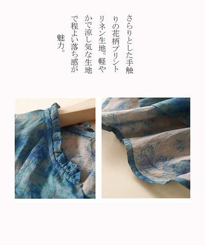 リネン シャツ ブラウス 半袖 レディース シャツブラウス 大きいサイズ Vネック 五分袖 フリル 夏ブラウス 麻100% タック入り ボタン プルオーバー ゆったり ふんわり 薄手 トップス 花柄