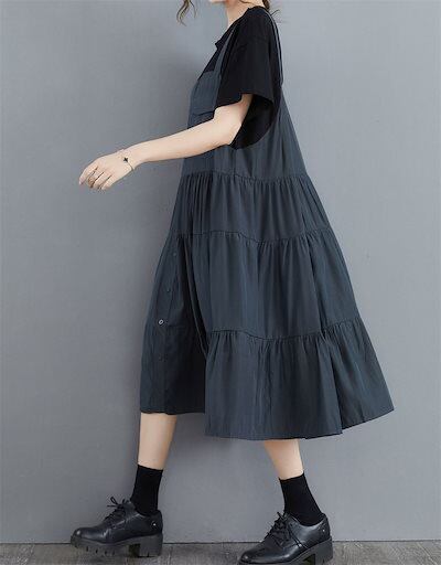 ワンピース 半袖 夏 レディース きれいめ 切り替えワンピース ドッキングワンピース サロペット ジャンパースカート 半袖ワンピース タック ギャザー入り ティアード 大きいサイズ 可愛い ボタン ロ