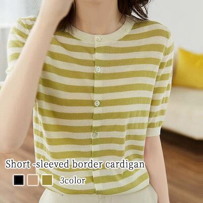シャツ レディース 半袖ボーダーカーディガン ボタンシャツ トップス 麻 カットソー 事務服 春 オフィス しわになりにくい スポーツ 半袖 ポロシャツ Tシャツ カジュアル シャツブラウス ブラウス