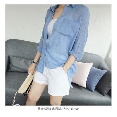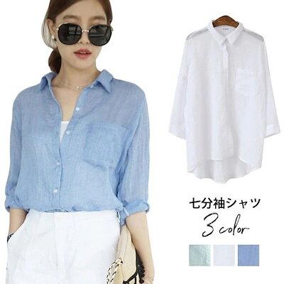 シャツレディース七分袖シャツ綿麻シャツシフォンシャツカジュアルシャツゆるシャツボタンシャ3010