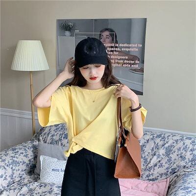 デザイン 4 不規則 ボタン 半袖 Tシャツ レディース ショート ダンス 快適 学生 無地
