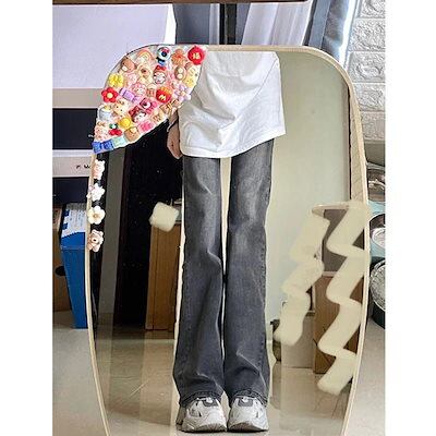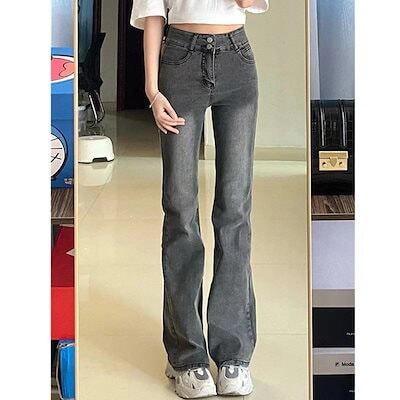 ファッション レディース スモーキーグレーのフレアパンツハイウエストジーンズレディース新作ハイウエストスリムジーンズ