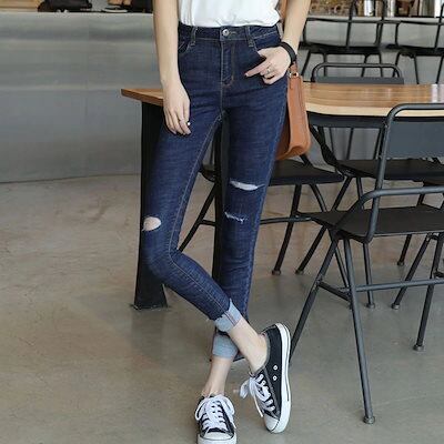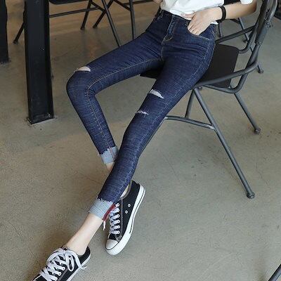 韓版 ハイウエスト 弾力 レディース 着痩せ デニム スキニーパンツ 百掛け スリム ファッション ジーパン