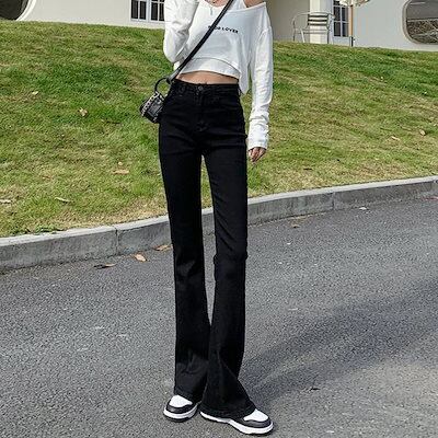 デニムパンツ フレアズボン スリム見え モップパンツ ゆったり レディース