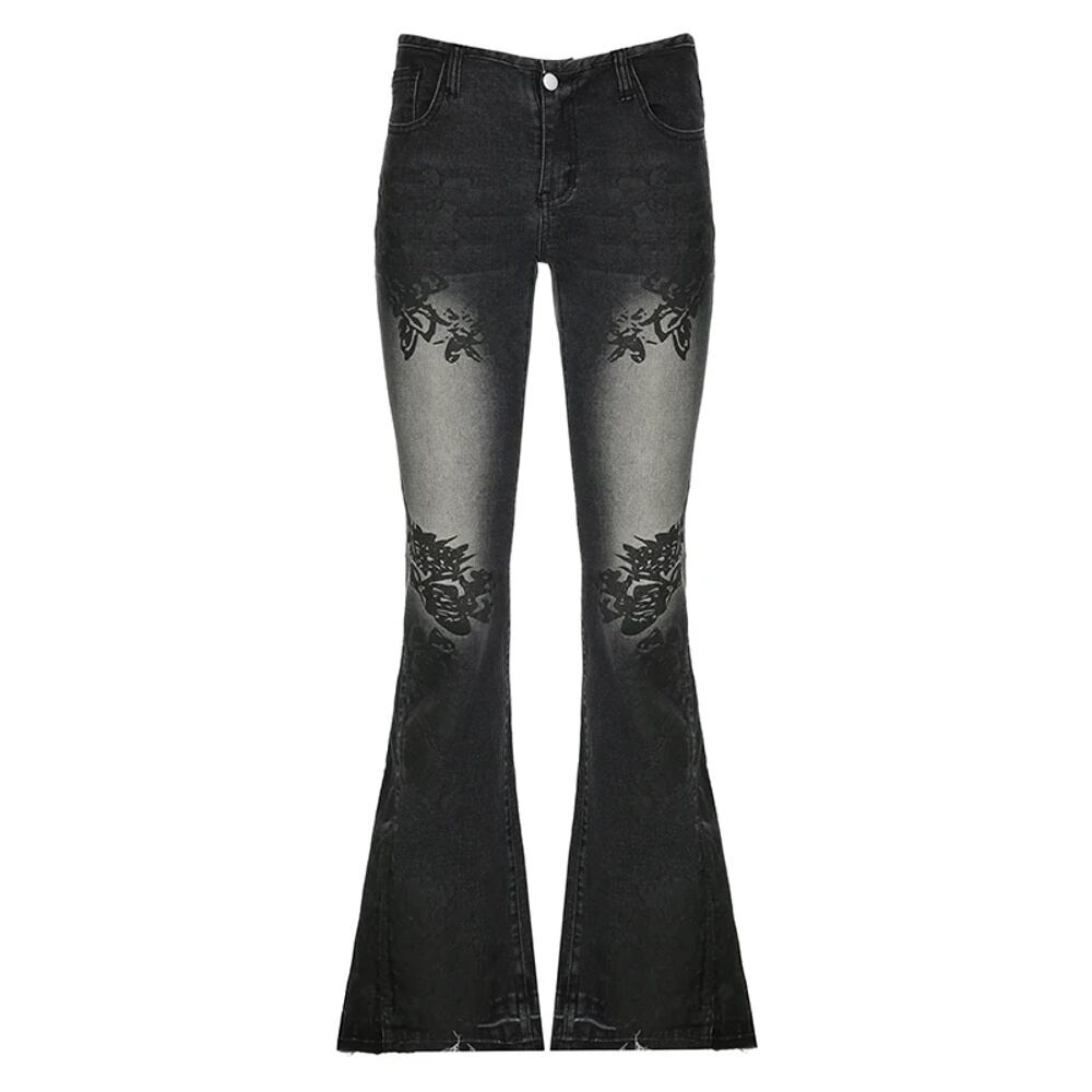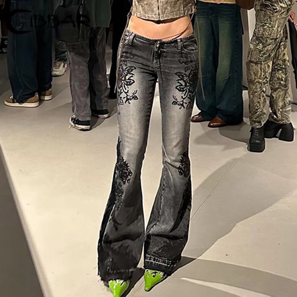Cibbar-レディースフローラルプリントローライズスリムデニムパンツ,ママジーンズ,レトロストリートウェア,ママジーンズ,ディストレストパンツ,y2k,2000s ボトム ワイドレッグ バギーパンツ T240831173434_01