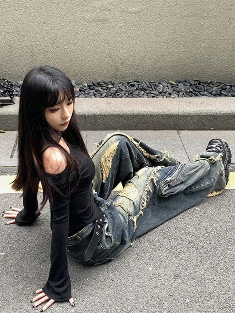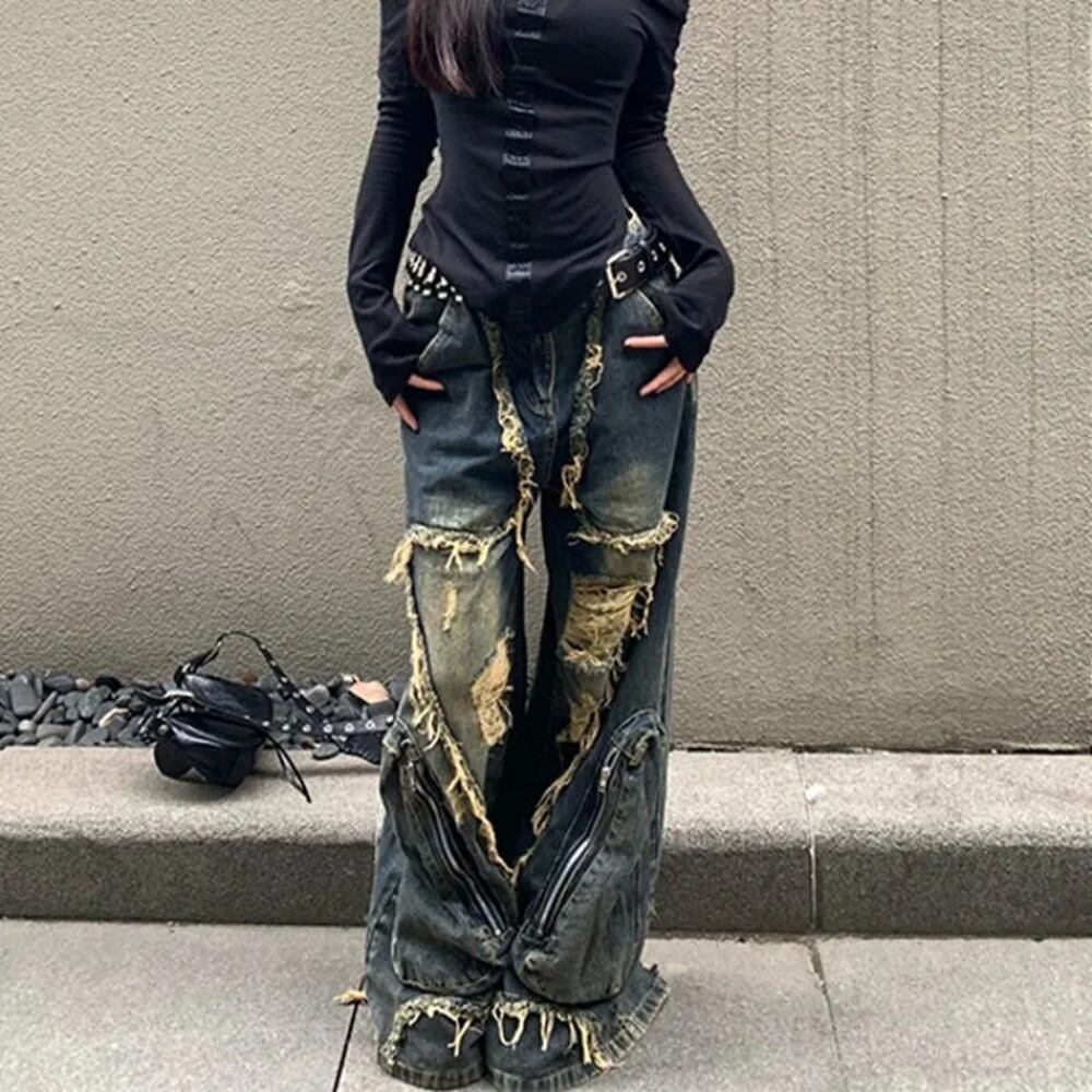 女性用のウォッシュドタッセル付きの色あせたバギージーンズ,ハイウエスト,ワイドレッグ,ルーズフィット,古いファッション,レトロなストリートヒップホップ,カジュアル,y2k ボトム ワイドレッグ バギーパンツ T240831173613_01