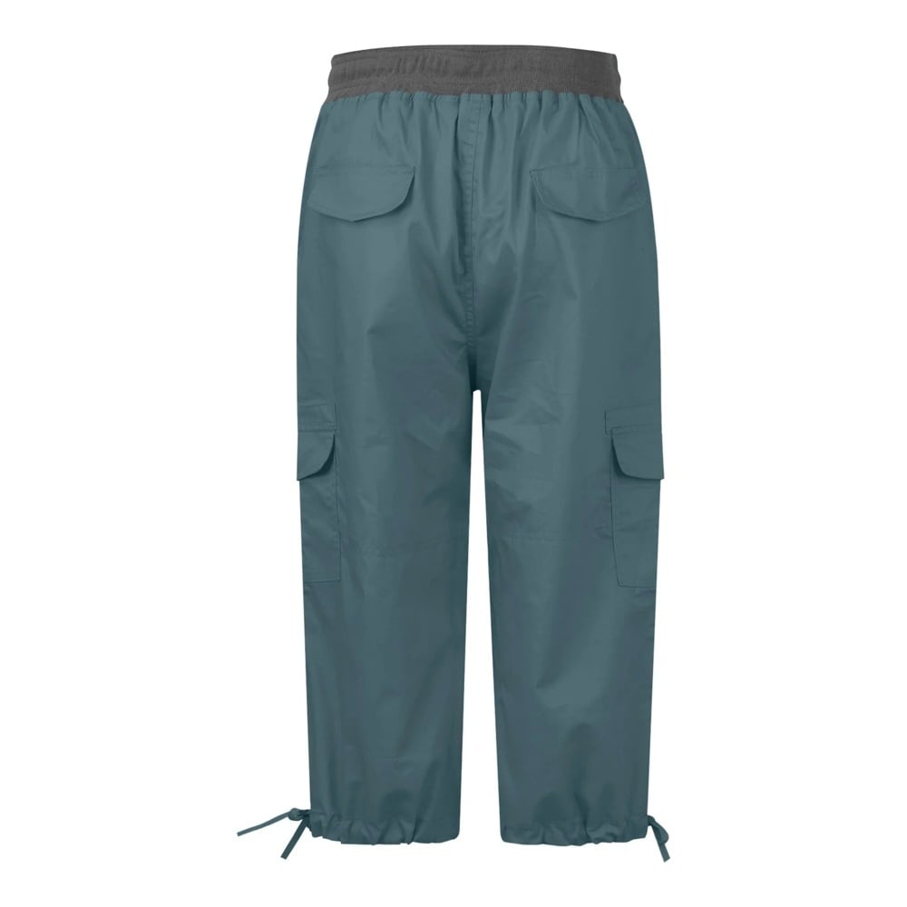 レディースマルチポケットカーゴパンツ、カジュアルストリートウェア、伸縮性ウエスト引きひも、7点オーバーオール、スポーツ、夏 ボトム ワイドレッグ バギーパンツ T240831222429_03